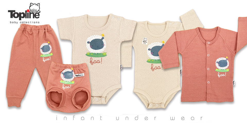 تولیدی تاپ لاین با توجه به سلیقه روز و معیارها و استانداردهای بین المللی از تنوع در رنگ و مدل خود استفاده کرده و هنر صنعت لباس نوزاد را به نمایش گذاشته است .